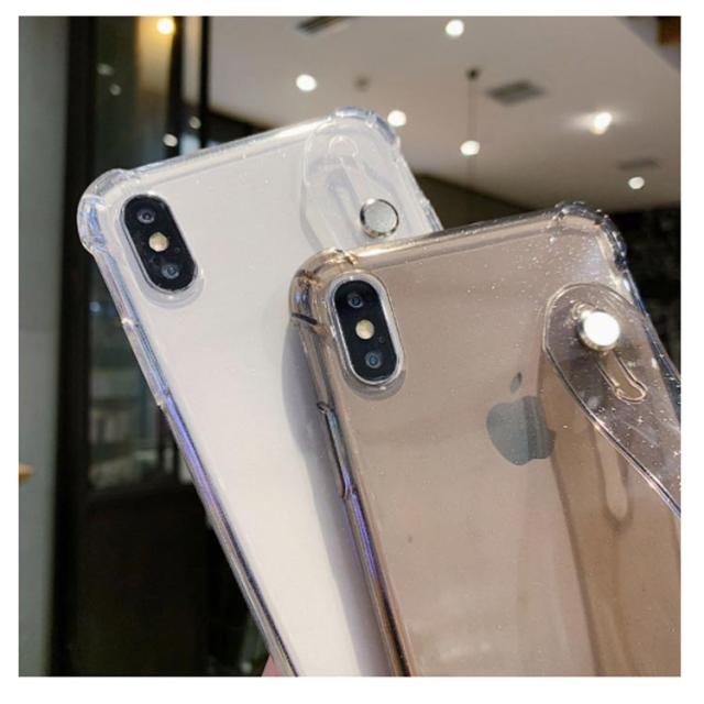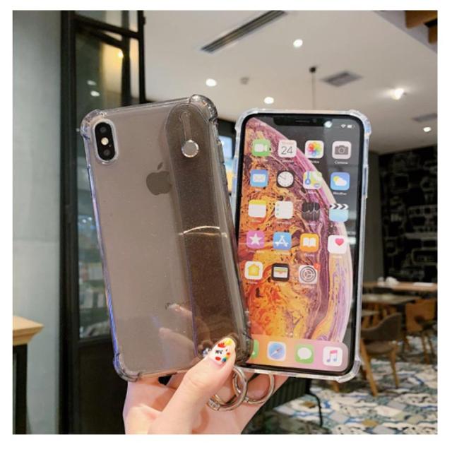 | ベルト付きクリアケース [落下防止ベルト付き] 指を通しすだけで衝撃を受けても落とさない。 [柔らかTPU素材] 装着しやすく全面保護。 [カラビナリング付き] [簡易スタンド式機能] | |