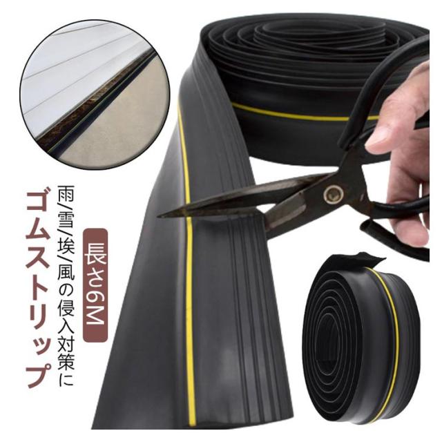 | 雨/雪/埃/風の侵入対策に PVC素材なので自由にカット可能 ゴムストリップ 長さ6M 車庫、扉、ガレージ、シャッター等の地面に取り付けすることで、シャッター等が閉まったときにしっかりと密閉し隙間を無くすことで雨風、埃 等の侵入を防ぐゴムストリップです。 高さ12mmの山なりデザインを採用することでより高いレベルの防塵、防水性を実現しました。耐久性に優れているPVC素材を採用しているので車などで踏んでも変形しにくく長寿命、防水性も抜群です。 シーリング材を塗布して貼り付けるだけの簡単装着となっており、コンクリート、アスファルト等に使用できるので利便性が良く、長さは1M 3M 5Mから選択可能です。 | |
