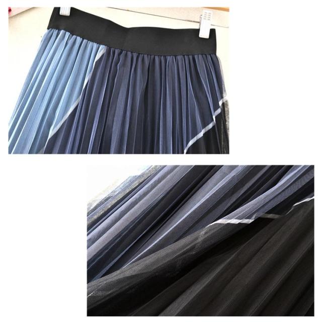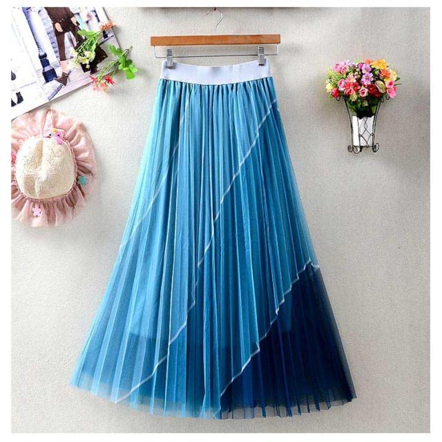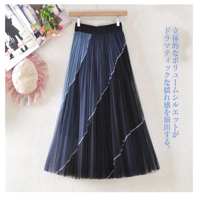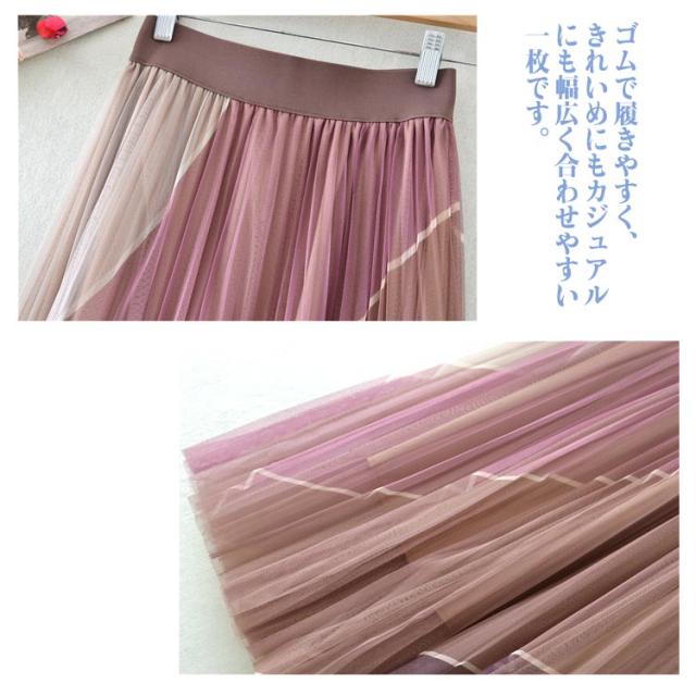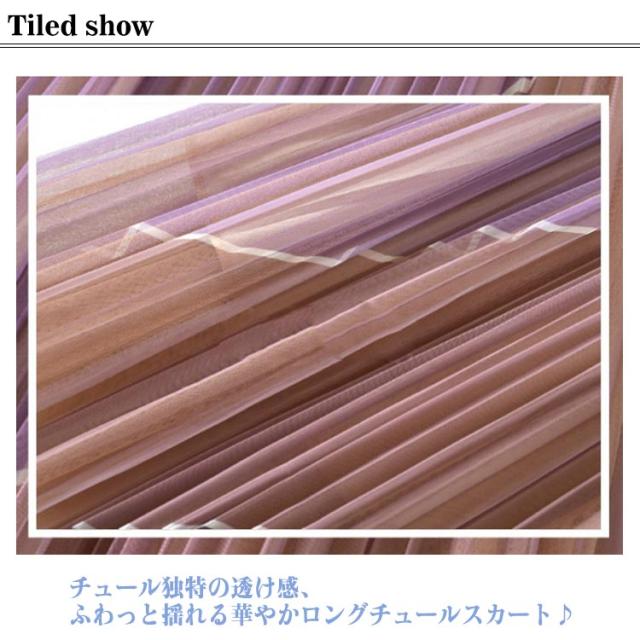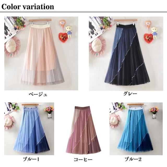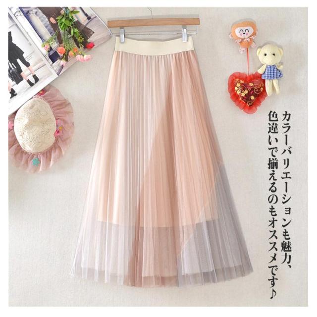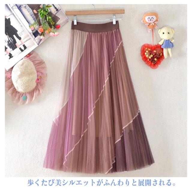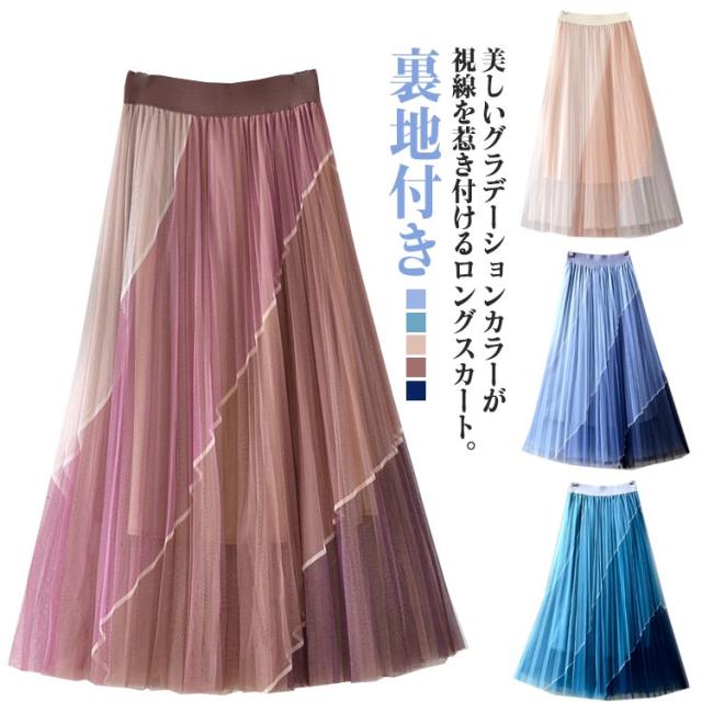 レディース パステルカラー ロングスカート スカート 春 チュールスカート フレア スカート グラデーション 裏地付き 配色 プリーツスカート ふんわり 夏 秋 透け感 フェミニン ウエストゴム Aライン エレガント お洒落