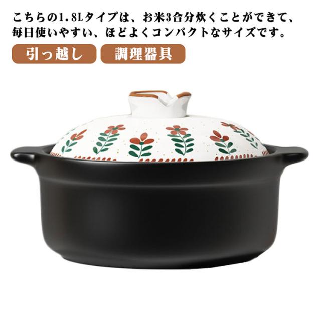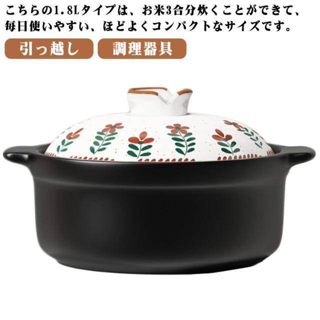 炊飯鍋 炊飯 1.8L 2−3人 土鍋 2人用 ごはん ご飯 7号 ガス火 炊飯器 陶器 炊飯 直火 専用 三合炊き 土鍋 土鍋 二人用 陶器鍋 炊飯 3合 卓上鍋 3人用 鍋 子供 家族 料理 花柄 両手鍋 おしゃれ 引っ越し お祝い 贈り物 キッチン雑貨