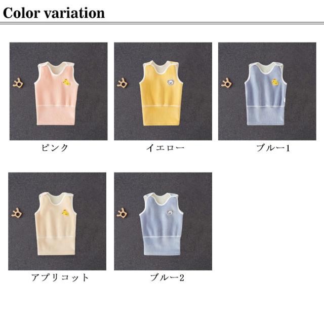 | 冷えやすいお腹を包み込み、体温調節に最適なニットベスト 薄手だから着ていてもゴワゴワしにくく、ベビーの動きを妨げることなく、体温調節をしていただけます。 スナップボタン式でお着替えもラクラク!春秋はもちろん、アウターの中に着て冬でも体温調節に大活躍! 淡くやさしい色使い、ナチュラルな雰囲気に仕上げました。 ロングシーズン大活躍!一枚あるととっても便利です。 | |