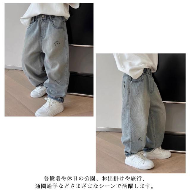 男の子 デニムパンツ カジュアルパンツ 子ども服 春秋 ダンス衣装 キッズ サルエルパンツ ゆったり 長ズボン 女の子 カッコイイ ウエストゴム おしゃれ ロング丈 ワイドパンツ 薄手 カジュアル ハンサム ジーンズ ジーパン