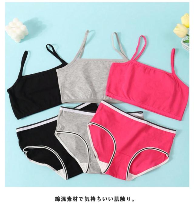 | 小学生高学年〜中学生向け女の子用下着上下2点セットです。 お得な2ペア(4点)セット!(ブラジャー*2+ショーツ*2) 綿混素材で気持ちいい肌触り。 修学旅行・水泳・スイミング・部活・体育やお泊り会におすすめのジュニア向けアウターセット。 伸縮性のあるノンストレスな着心地。 新学期や新年に向けて新しい下着セットは色違いでも欲しくなっちゃう! | |