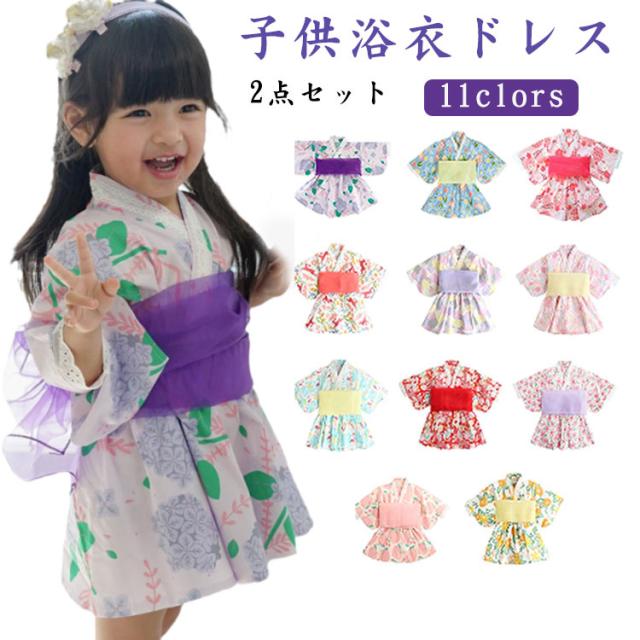 記念撮影 帯セット 甚平 兵児帯付 浴衣 甚平 ワンピース 子供 浴衣セット ベビー お祭り コットン 綿 浴衣ドレス 花柄 子供服 女の子 花火 夏祭り 夕涼み会 着物 盆踊り お盆休み 幼児 保育園 幼稚園 キッズ