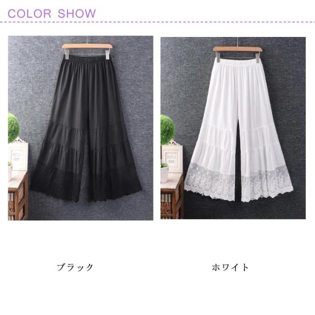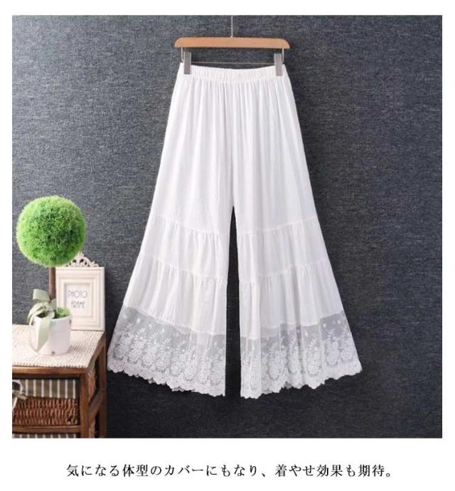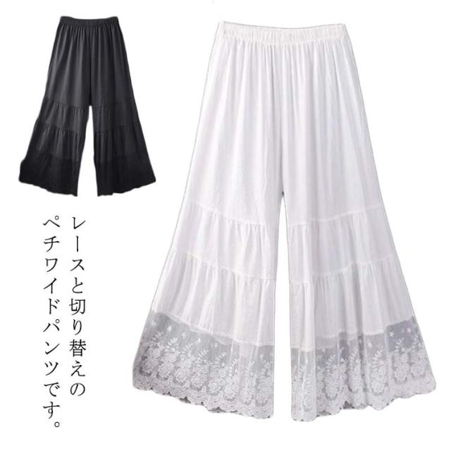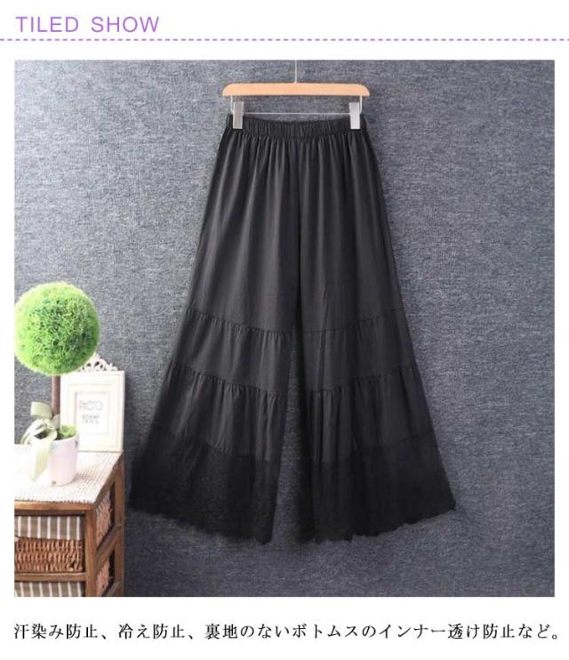 ワイドパンツ きれいめ 透けない レイヤード 夏 パンツ レース 重ね着 ロングパンツ 春 透け防止 ペチパンツ おしゃれ インナー ゆったり 大きいサイズ レディース ペチコート ロング 下着 ナチュラル シンプル 体型カバー ウエストゴム S M L