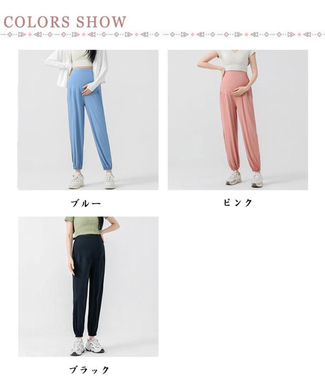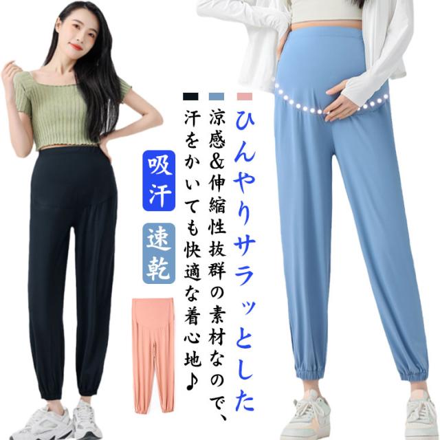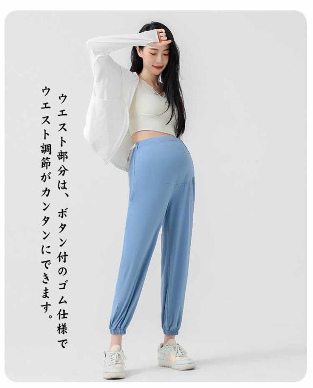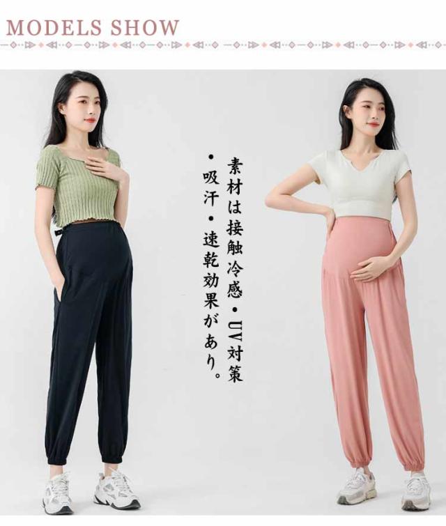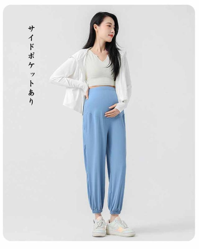 マタニティ ポケットあり パンツ ズボン 冷感 吸汗 速乾 UVカット ウェスト調整 UPF50+ 産前 産後 妊婦 マタニティウェア スポーツ カジュアル ジョガーパンツ