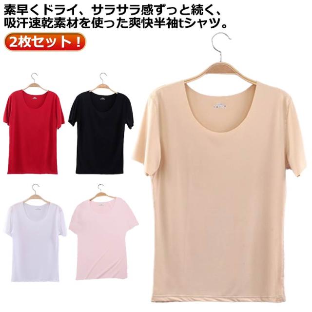 UVカット 半袖 トップス 作業着 接触冷感 涼しい シームレス クルーネック 吸汗速乾 夏用 2枚セット! レディース スポーツ ストレッチ 通気性 ゴルフインナー スポーツ 作業服 2枚セット! ランニング