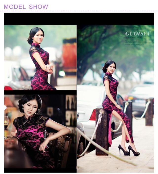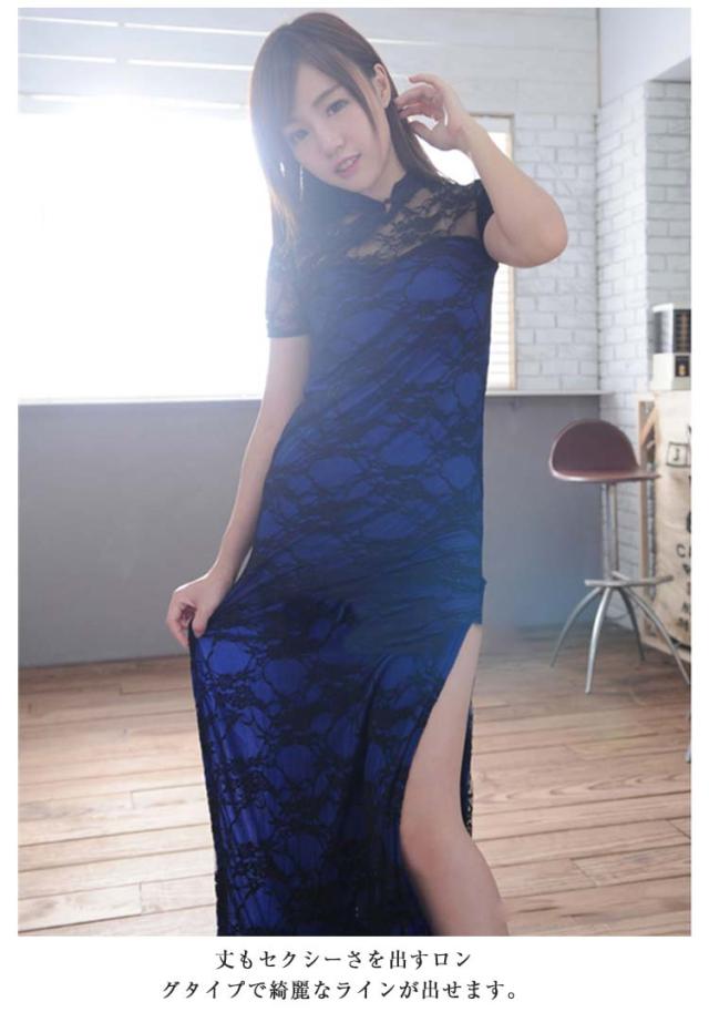 | レースと切り替えのチャイナドレス。 ビッグスリット入りデザインはおしゃれ! 丈もセクシーさを出すロングタイプで綺麗なラインが出せます。 | |