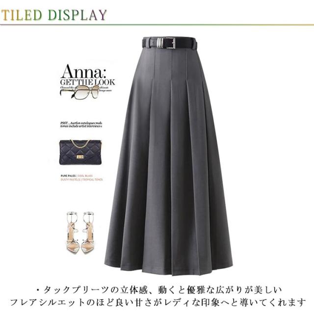 タック ロング丈 レディース ロンスカ 長め フォーマル 夏 通勤 オフィスカジュアル 女性 春 プリーツスカート