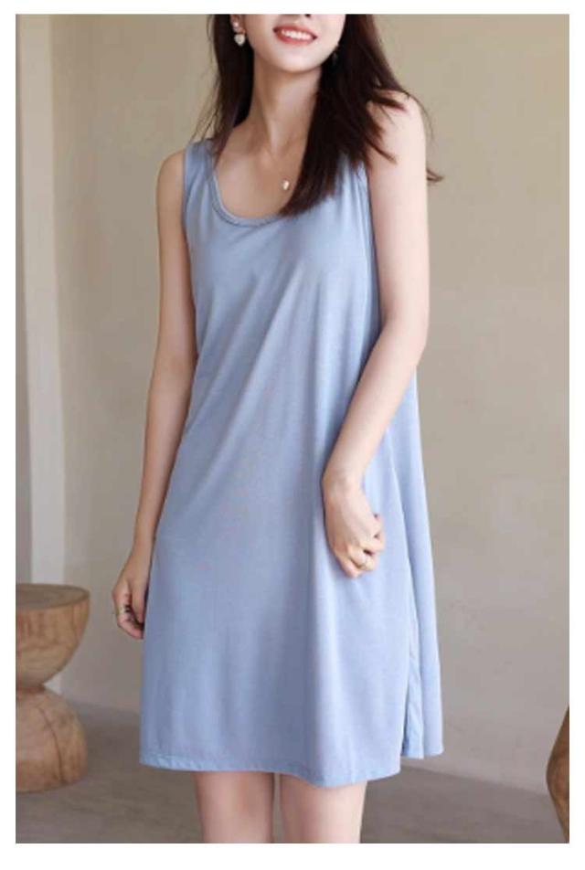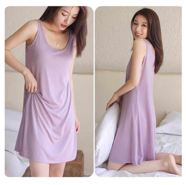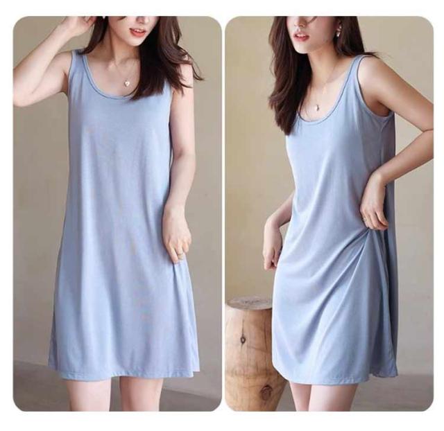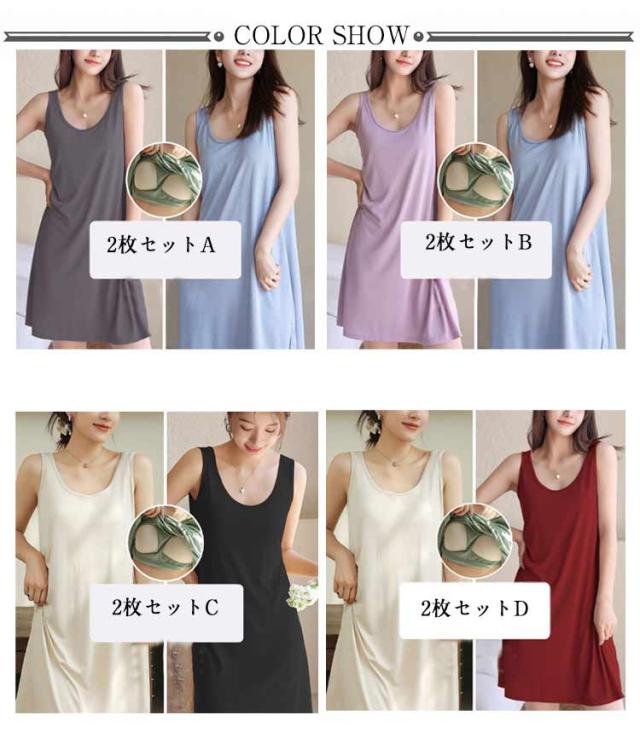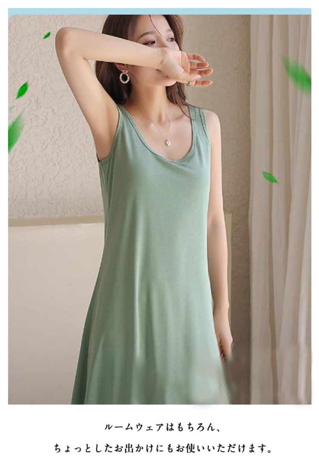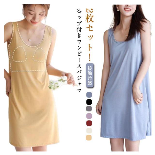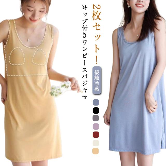 無地 ゆったり 涼しい ナイトウェア パジャマ カップ付き 接触冷感 2枚セット! 夏 レディース ルームウェア ナイトウェア 体型カバー ロング丈 ルームワンピ ワンピース 寝間着 大人 可愛い ノースリーブワンピース