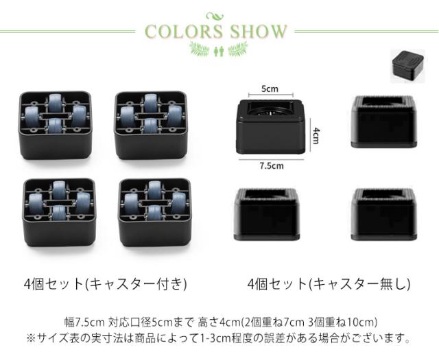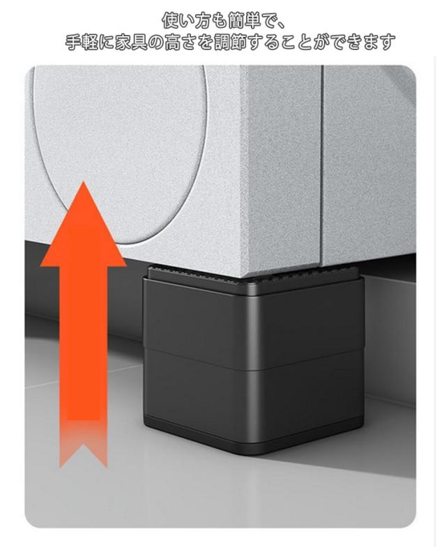 | 洗濯機や家具の安定性を高め、振動や騒音を軽減するために必要なアイテムです。 防振ゴム、防振マットが付属しているため、設置後すぐに使用することができます。使い方も簡単で、手軽に家具の高さを調節することができます。 キャスターはスムーズに回転でき、移動は非常にスムーズで、とても便利です。 洗濯機、冷蔵庫、ベッドなどの家電家具の脚に適応し、ニーズによりよくフィットし、スペースを提供し、掃除も便利になります。 様々なユーザーの要求や収納スペースの制限に合わせた最適な位置に洗濯機を設定でき、使用のしやすさを向上させます。 | |