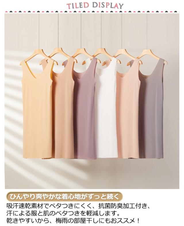 スリップ 涼しい クール ロング 吸汗速乾 ワンピース ひんやり 素肌さらり 透け防止ペチコート 高級タンクワンピースインナー 0.1mm極薄冷感! スリップ ひびきにくい レディース インナーワンピ ペチコート 汗ジミ 抗菌防臭