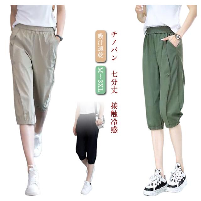 レディース クロップドパンツ ジョガーパンツ 夏 7分丈 カジュアル ハーフパンツ テーパードパンツ 接触冷感 おしゃれ 涼しい ひんやり 吸水速乾 涼感 ボトムス ズボン ルームウェア チノパン 薄手 無地 大きいサイズ お洒落 冷感パンツ