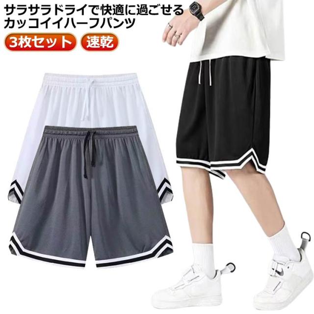 | 3枚セット!サラサラドライで快適に過ごせるカッコイイハーフパンツ。 吸水速乾・吸汗速乾で汗をかいてもべたつかない。 スポーツはもちろん、ルームウェアやパジャマにもOKなハーパン。 ウエストはゴム仕上げなので着脱も便利で、ウエストの調整がしやすいのがポイント。 ウォーキングウェア、ジョギングウェア、ランニングウェア、トレーニングウェア、筋トレ、ヒップホップダンス、ジム、フィットネスウェア、部活動、ヨガなどの練習着やスポーツウエアにもスポーティでカワイイ スポーツパンツ。 | |