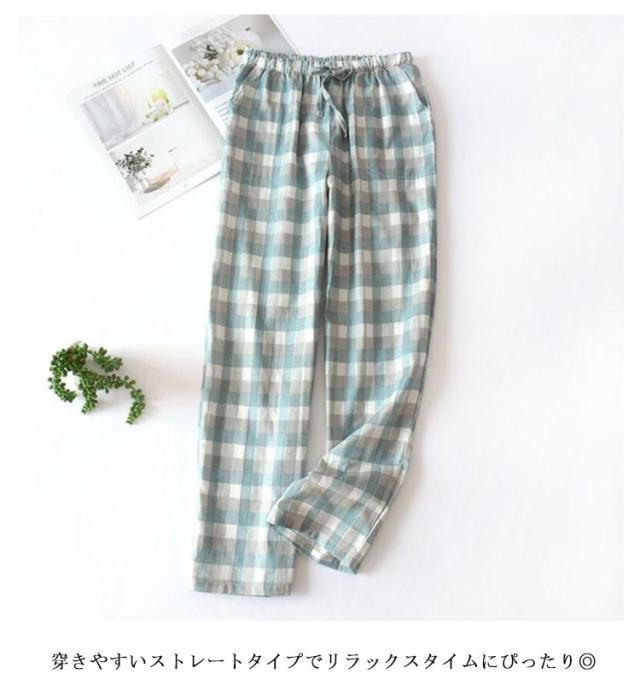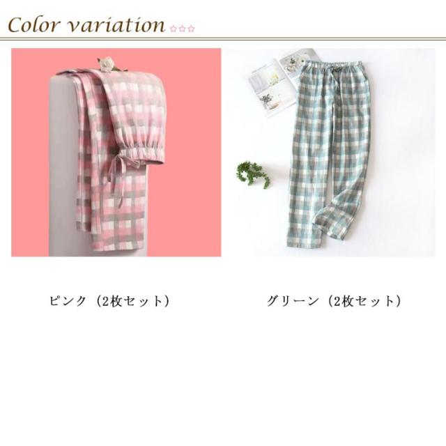 ガーゼ 綿 長パンツ チェック パンツ 2枚セット!パジャマ 2枚セット!パジャマ コットン ルームパンツ 薄手 ルームウェア パジャマ 下だけ ロングパンツ ズボン 夏 レディース 快適 ゆったり パジャマ 可愛い 部屋着 大きいサイズ