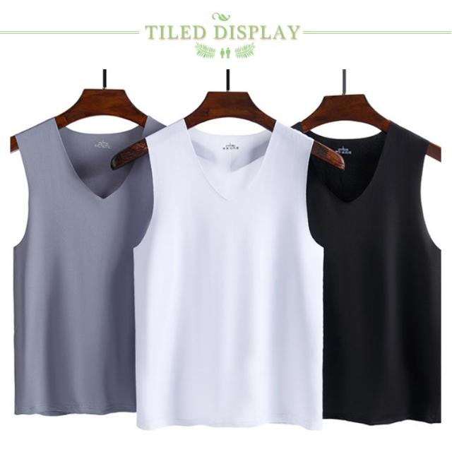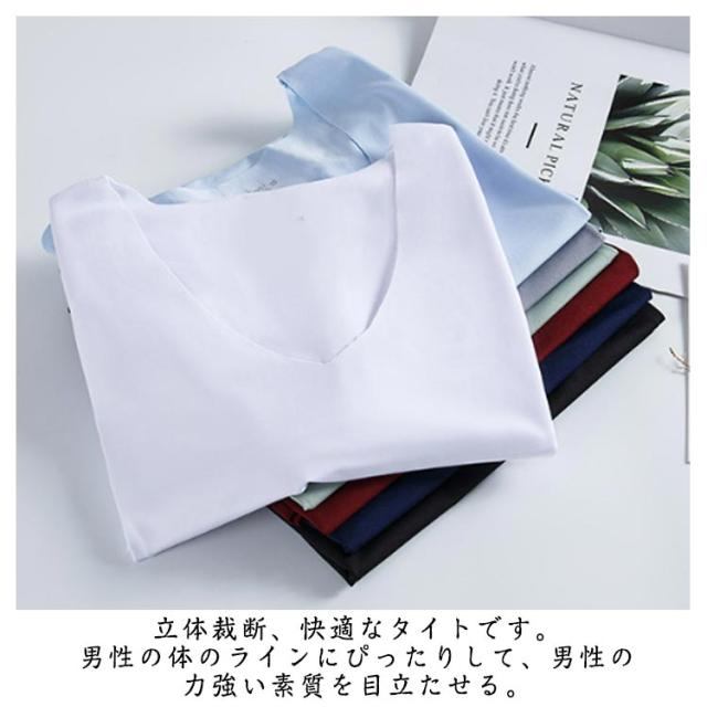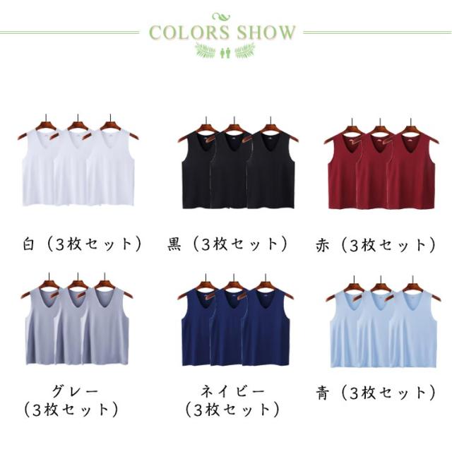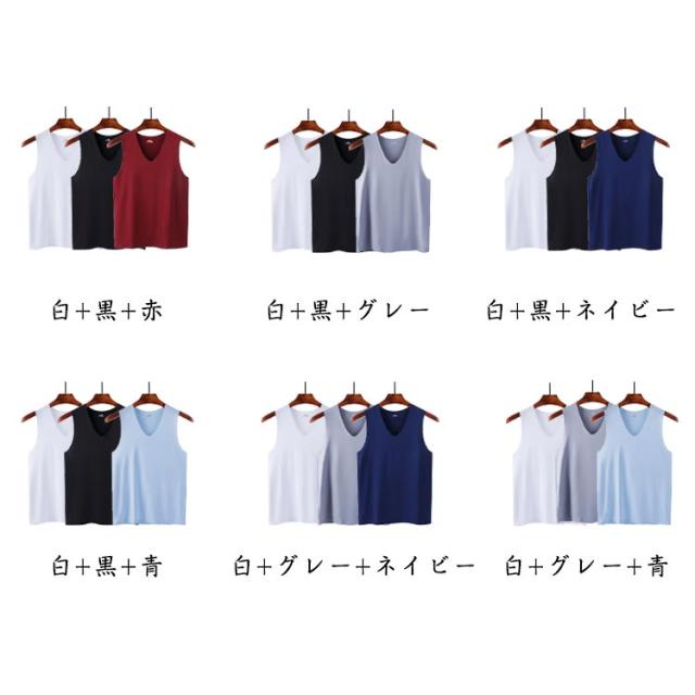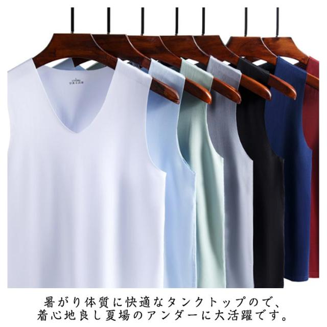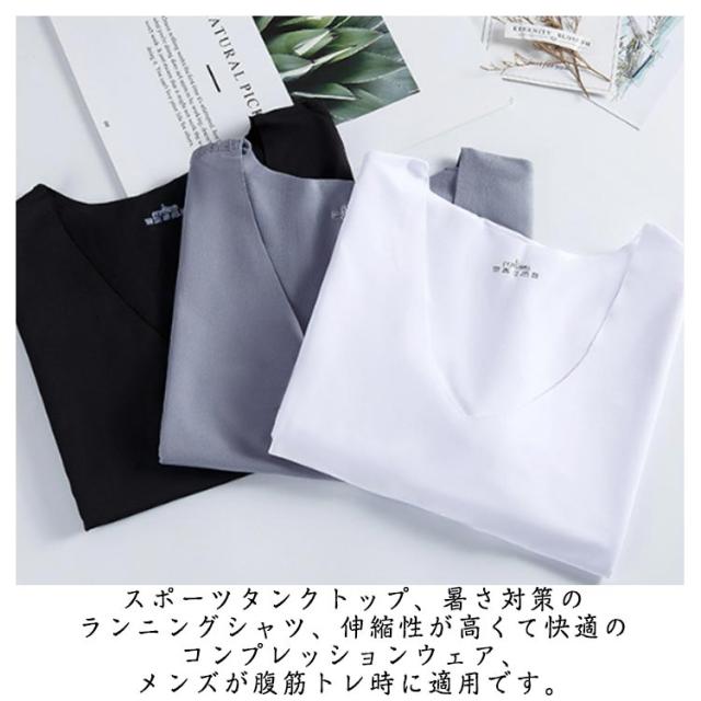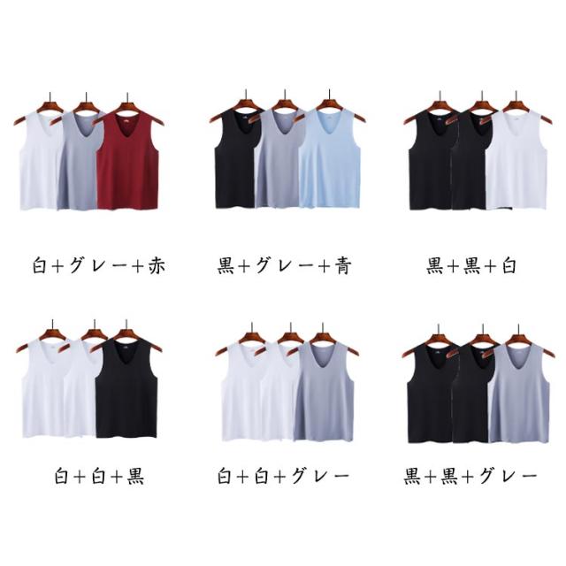 接触冷感 涼しい タンクトップ シームレス インナーシャツ スポーツ Vネック 夏 通気 ノースリーブ ストレッチ トップス 3枚セット! メンズ 吸汗速乾 3枚セット! ひんやり 春夏 tシャツ アンダーウエア レイヤード 重ね着