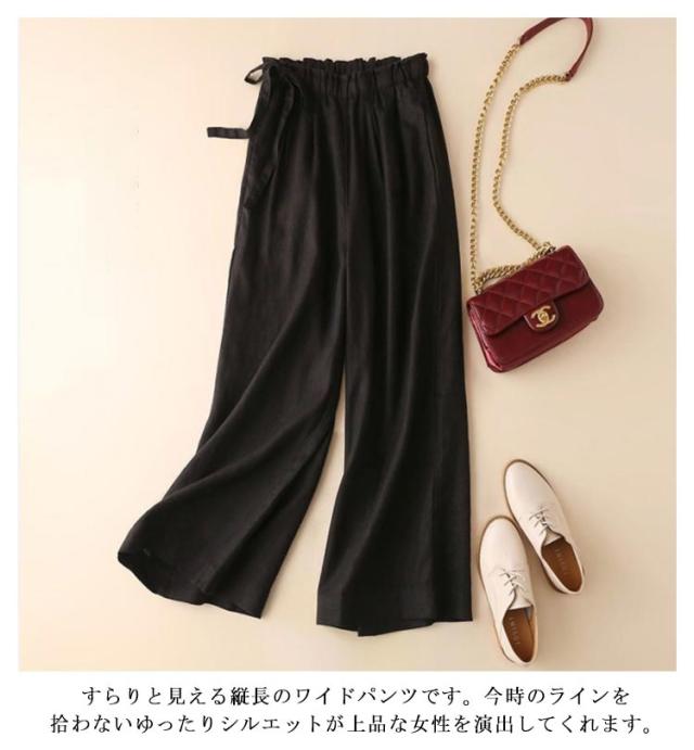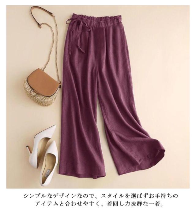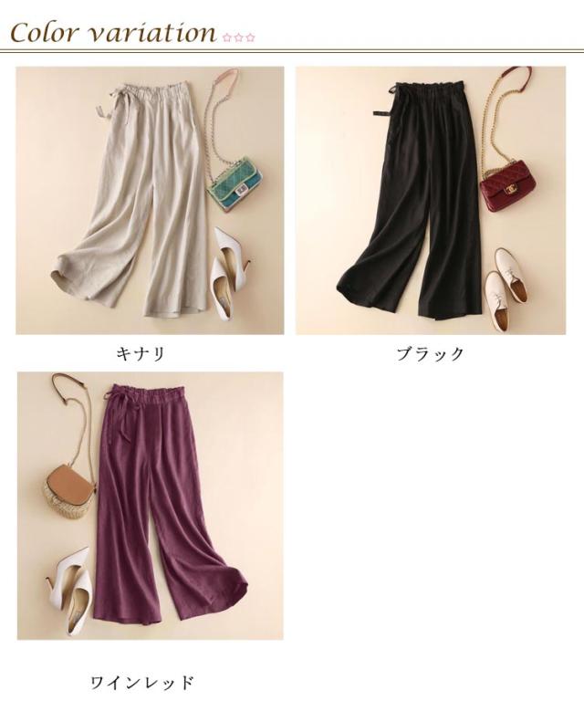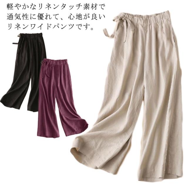リネン混ワイドパンツ リネン混 ガウチョ 麻混 無地 パンツ 麻 ゆったり リネン混ワイドパンツ 亜麻 スカンツ パンツ ボトムス レディース ガウチョ 9分丈 春 夏