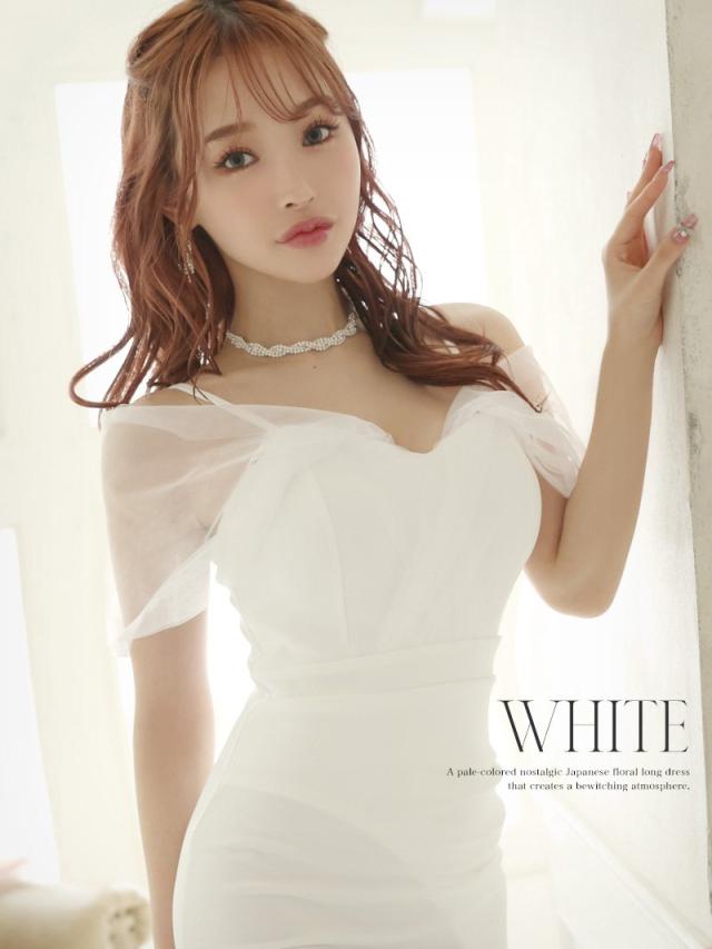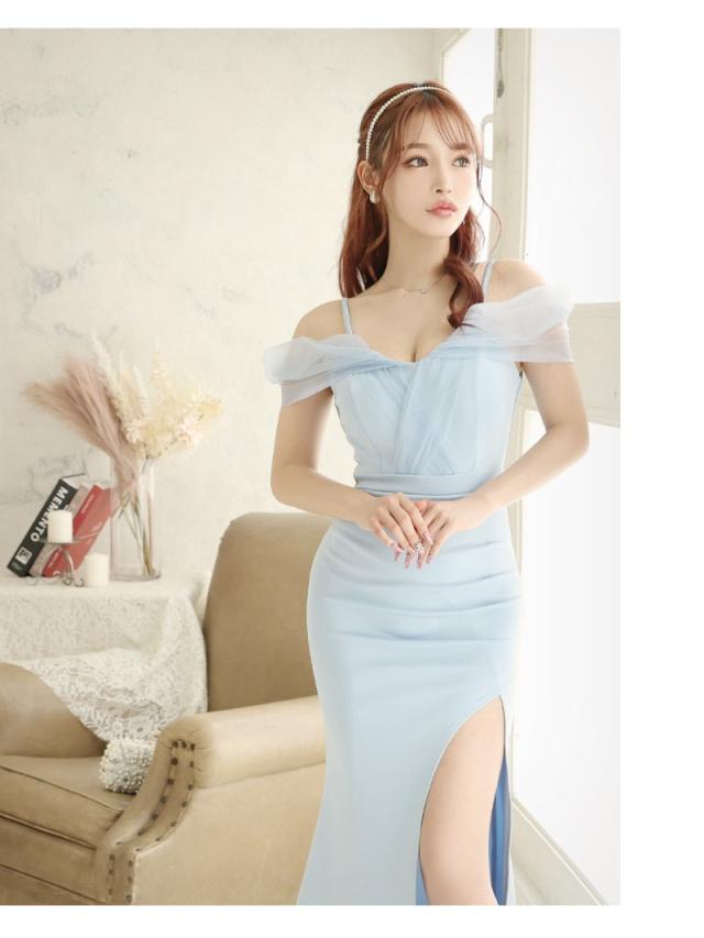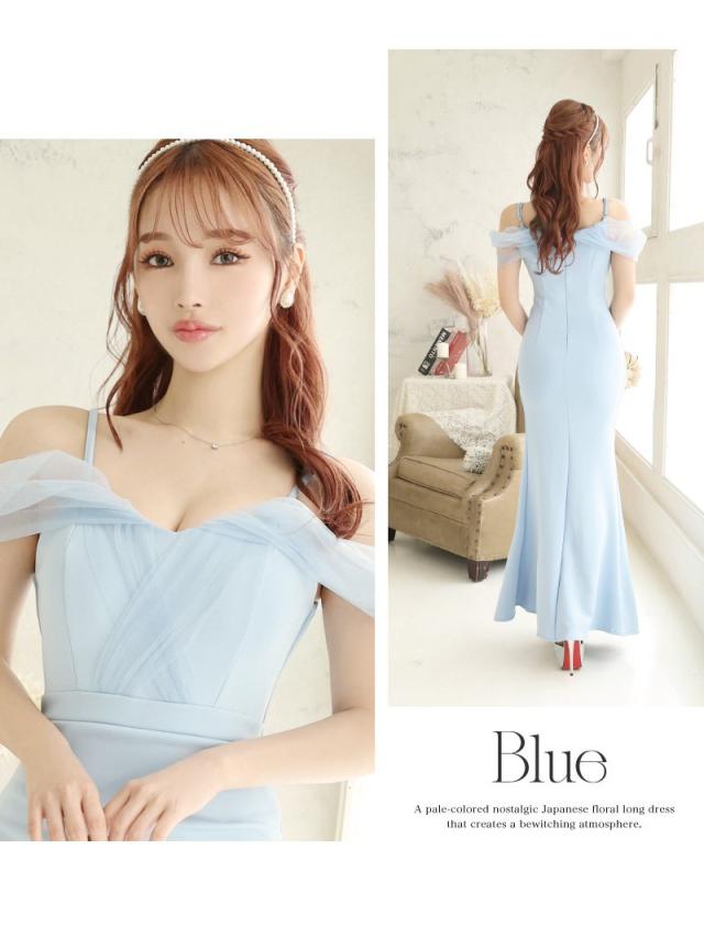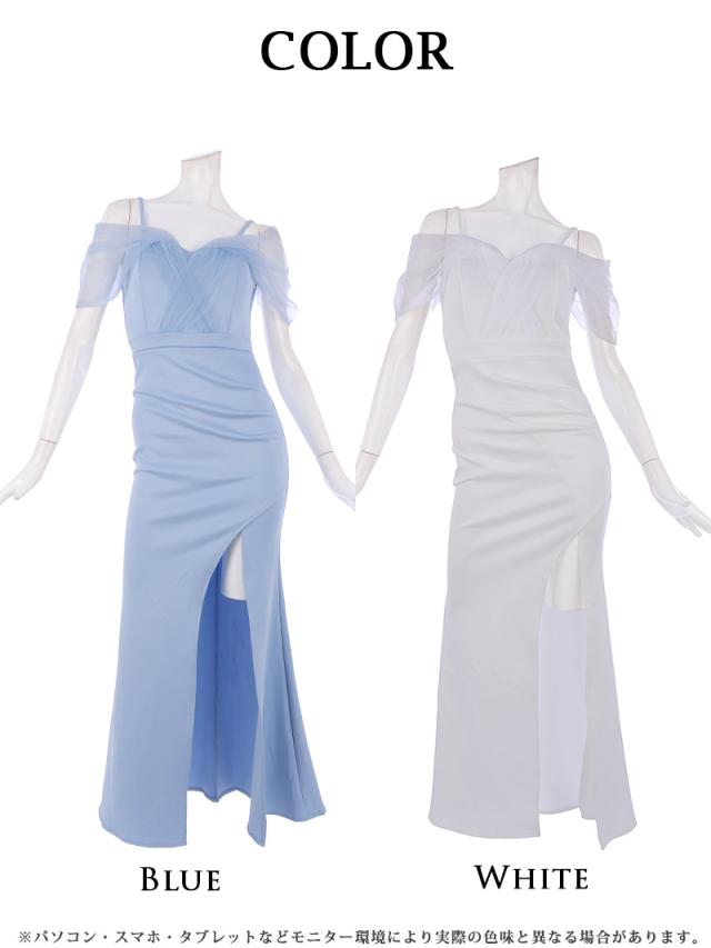 一部予約販売 ロングドレス Ryuyu オフショル ロングドレス 水色 白 オーガンジー キャバ ドレス キャバドレス ロング