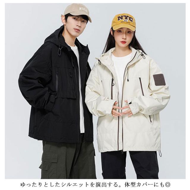 メンズ アウター ユニセック マウンテンパーカー ゆったり 春服 レディース フード付き ブルゾン 春 ジャケット 秋 ライトアウター 秋服 撥水 男女兼用 ジャケット 大きいサイズ 体型カバー 着?せ アウトドア 釣り 無地
