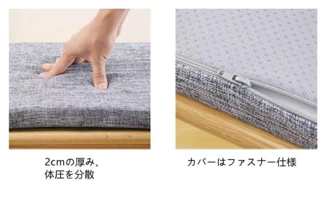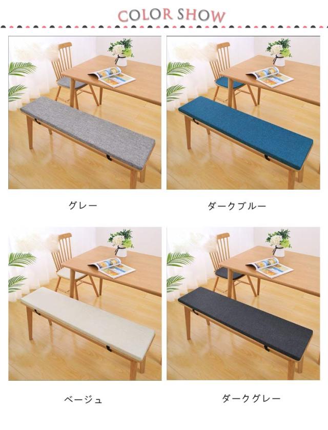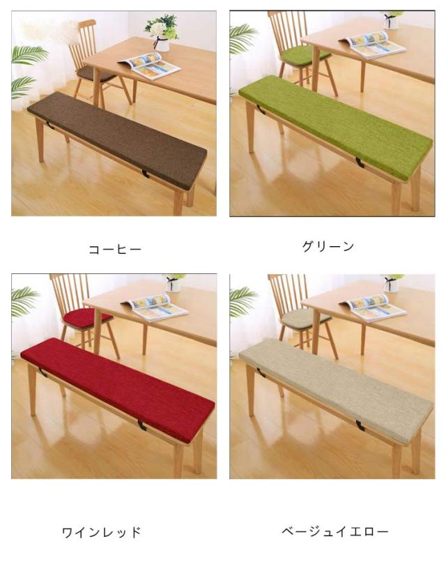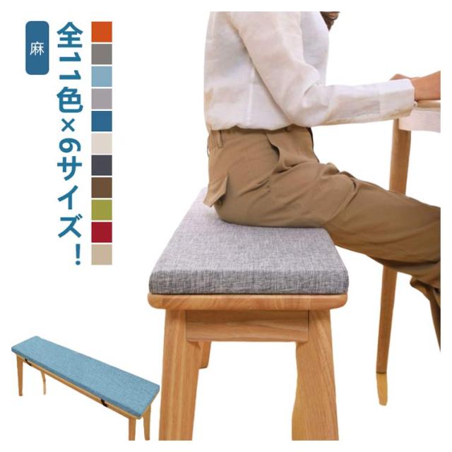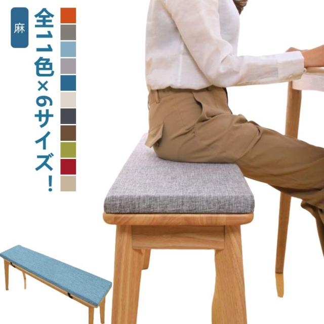 無地 ダイニングベンチ ベンチシート 麻 リネン ベンチシートカバー ロングクッション 厚さ2cm ベンチ用座布団 ベンチシートクッション 洗える チェアパッド 玄関ベンチ 100/120/140cm お尻痛くない スポンジパッド 冷感 ベルト着脱式 滑り止め