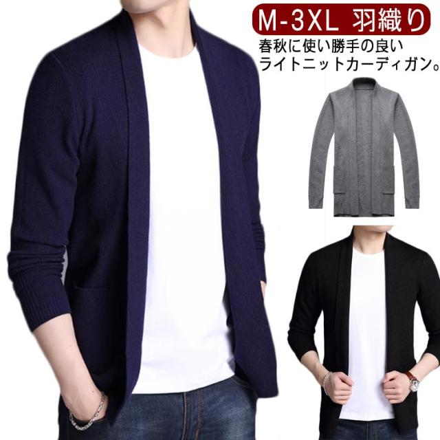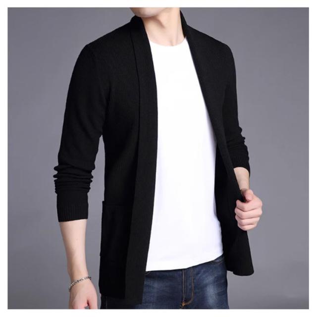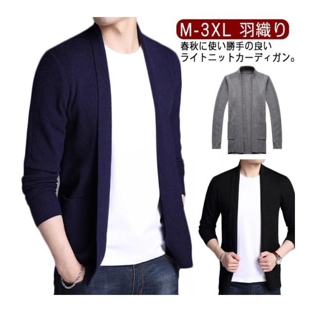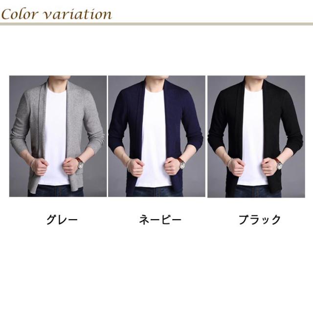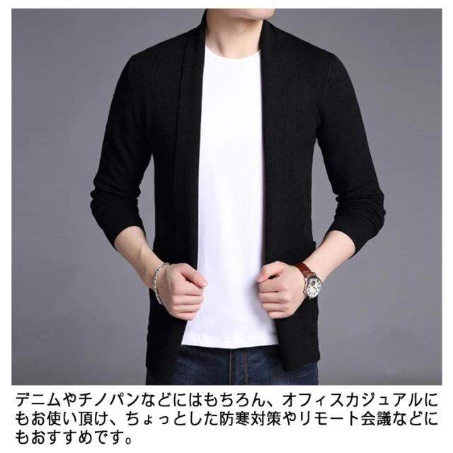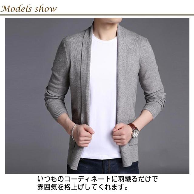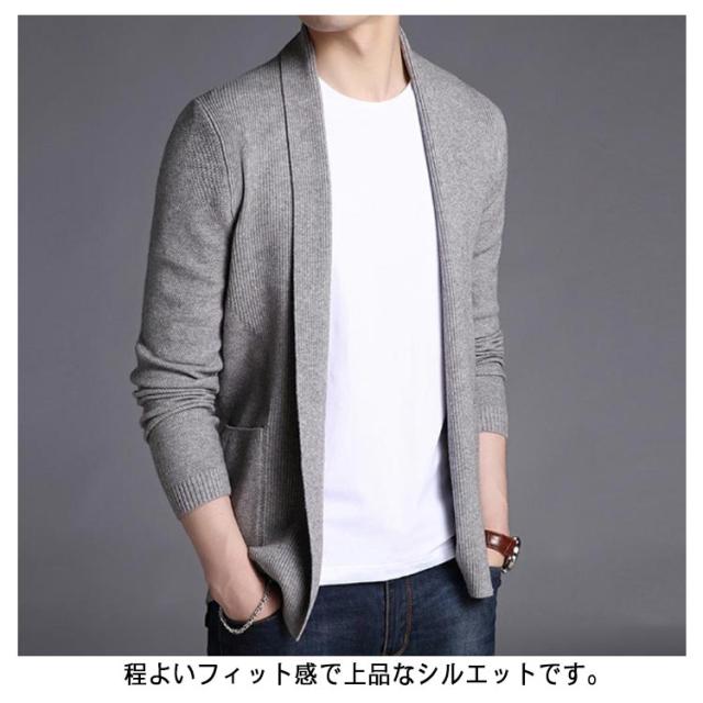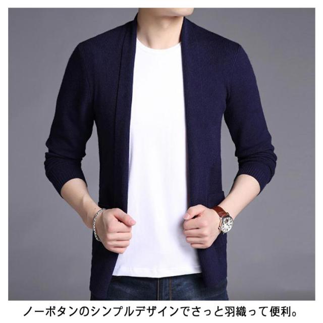 カーディガン ショールカラー ニットジャケット 羽織り メンズ ノーボタン ニット 長袖 カジュアル ビジネス オフィス ニットカーデ 秋服 春服 通勤 紳士 シンプル 無地 ポケット付き