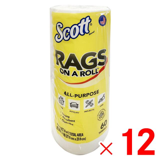 スコット Rags ラグズ ホワイトロール 60カット 紙ウエス ×12個 ケース販売