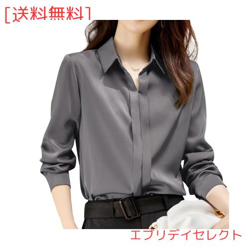 [Ladyangel] シャツ ブラウス レディース サテン トップス 長袖 タック 折り襟 柔らかい 着痩せ 無地 シンプル きれいめ エレガント ワイ