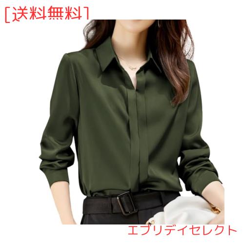 [Ladyangel] シャツ ブラウス レディース サテン トップス 長袖 タック 折り襟 柔らかい 着痩せ 無地 シンプル きれいめ エレガント ワイ