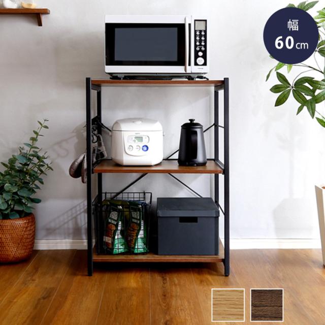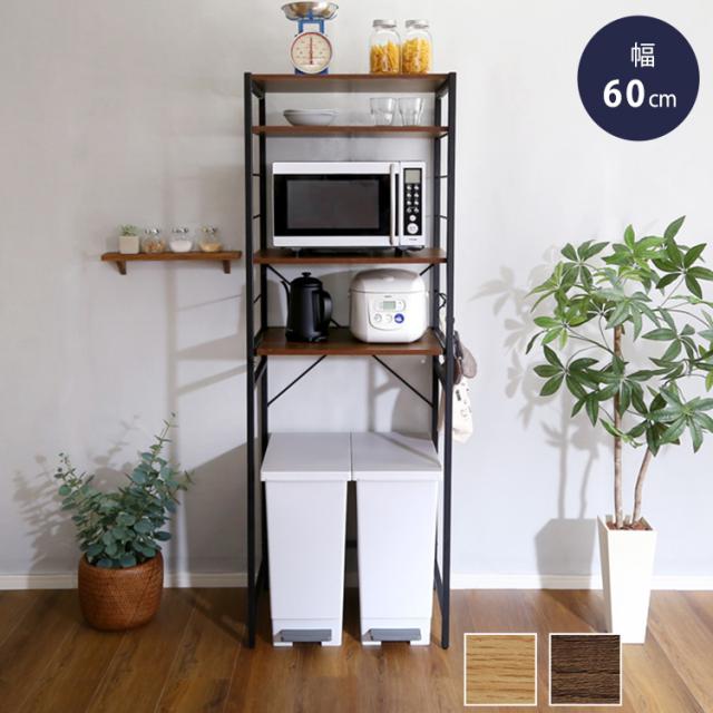 レンジ台 レンジラック 幅60cm キッチンラック ウォールナット ブラウン色 全2色 スライドトレー キッチン収納