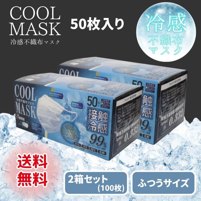 ホントに冷たい!冷感不織布マスク 50枚入り ふつうサイズ【2箱セット】