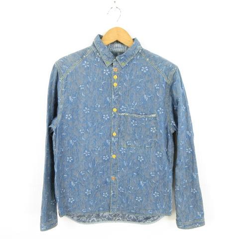 【中古】ヴォー VOO デニムシャツ 長袖 花柄 青 1 *A878 メンズ