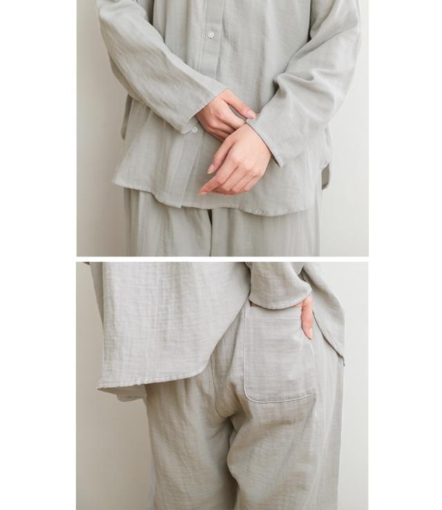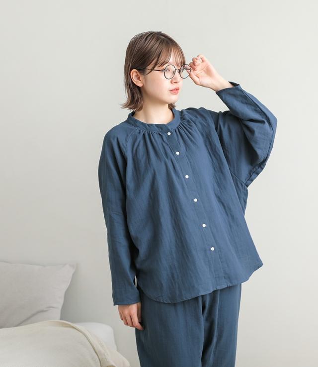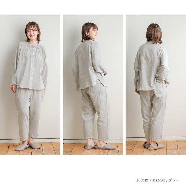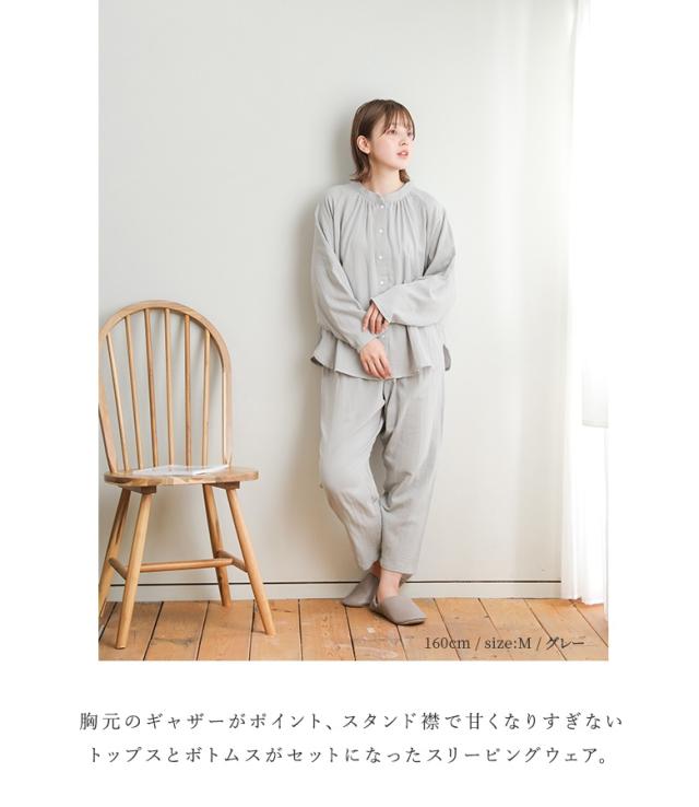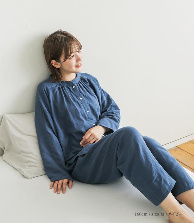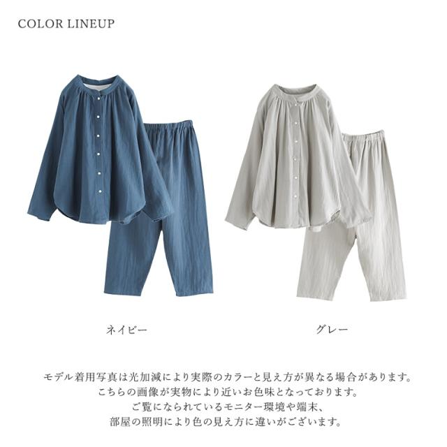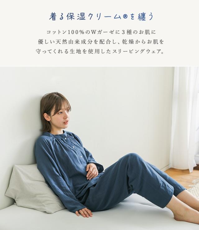 パジャマ レディース ルームウェア 綿100% 前開き 長袖 ダブルガーゼ コットン 無地 ナイトウェア 上下セット セットアップ 部屋着 着る保湿クリーム おしゃれ かわいい ギフト 襟なし ロングパンツ 柔らか 保湿 通気性 ベーシック シンプル ペア M L LL 二重ガーゼ 寝巻き お揃い 2点セット スタンドカラー ラグラン ボタン トップス テーパード 天然由来成分配合 シアバター オリーブオイル シルクアミノ酸 水分率高い 乾燥防止 乾燥から守る ファッション雑貨 アンクル丈 クロップド丈 くるぶし丈 ロング丈 ポケット ギャザー ウエストゴム ウエスト調整 ひも付き Wガーゼ コットン100% おうちで洗える 春 夏 秋 オールシーズン 大人女子 大人可愛い お洒落可愛い ナチュラル Mサイズ Lサイズ LLサイズ ぽっちゃり 大きいサイズ 入院 紺 ネイビー グレー 灰色 くすみカラー スモーキーカラー 母の日 【TP】 kiruhoshitsu[ID]25gm08z[ラグランフレアスリーブスリーピングウェア]