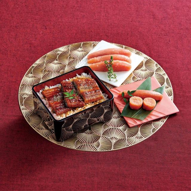 ■商品詳細:辛子明太子無着色150×1、うなぎ蒲焼50g×3、タレ×3袋、さんしょう×3袋