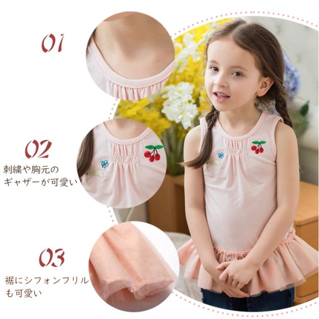 女の子 シャツ ノースリーブ 子供服 子供シャツ キッズ 90/100/110/120/130 子供服 夏