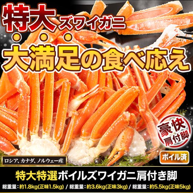 かに カニ 蟹 快適生活 ずわいがに 特大特選ボイルズワイガニ肩付き脚 総重量:約1.8kg(正味1.5kg) カニ鍋 かにしゃぶ BBQ キャンプ