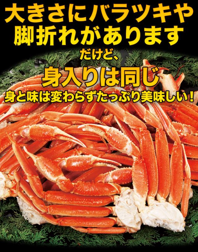 甲羅なしの美味しい肩付き脚部分だけのセットで大きさ不揃いや脚の折れ欠けなどの訳あり品のため通常よりかなりお買得!