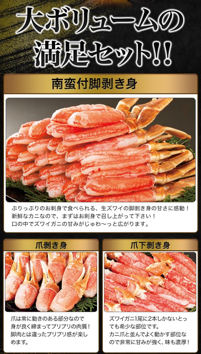 快適生活 かに カニ 蟹 絶品!生ズワイガニ剥き身欲張りセット 総重量:約3.2kg(正味2.4kg)