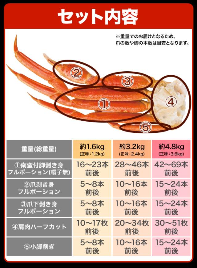 快適生活 かに カニ 蟹 絶品!生ズワイガニ剥き身欲張りセット 総重量:約4.8kg(正味3.6kg)