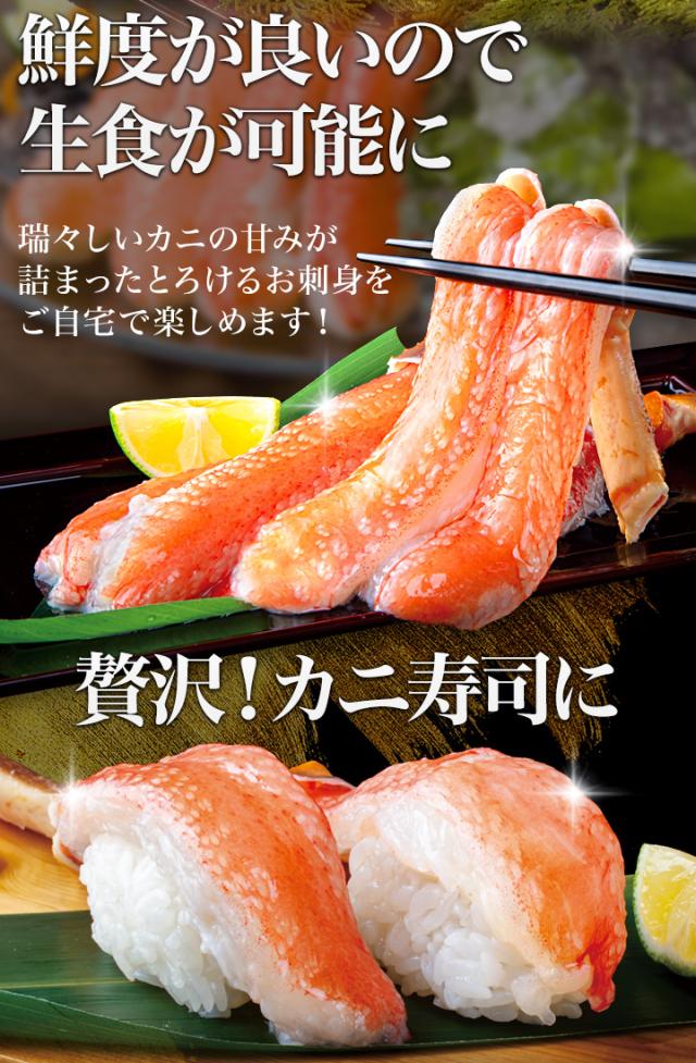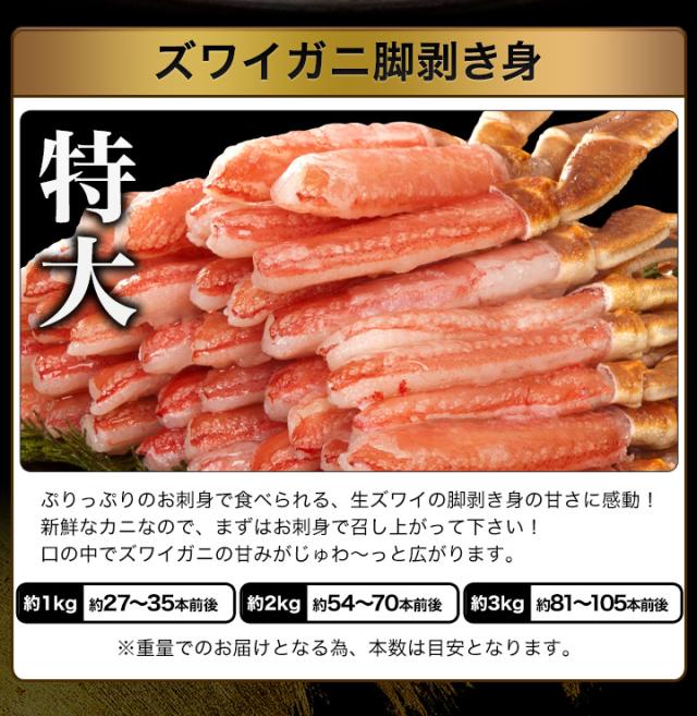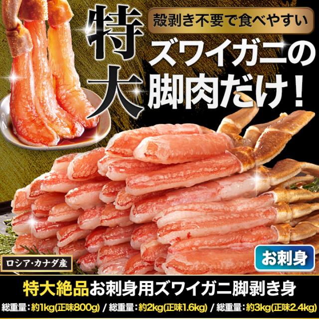 かに カニ 蟹 快適生活 ポーション ずわいがに 生 特大絶品お刺身用本ズワイガニ脚剥き身 総重量:約2kg(正味1.6kg) カニ鍋 かにしゃぶ