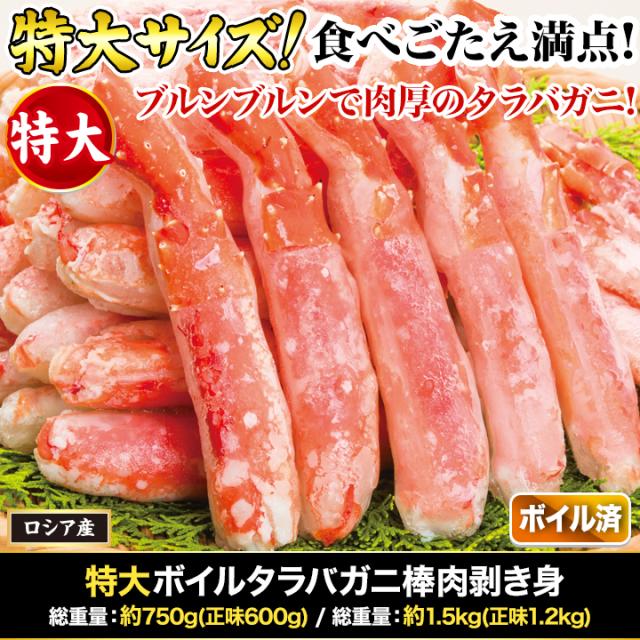 快適生活 かに カニ 蟹 特大ボイルタラバガニ棒肉剥き身 総重量:約750g(正味600g)