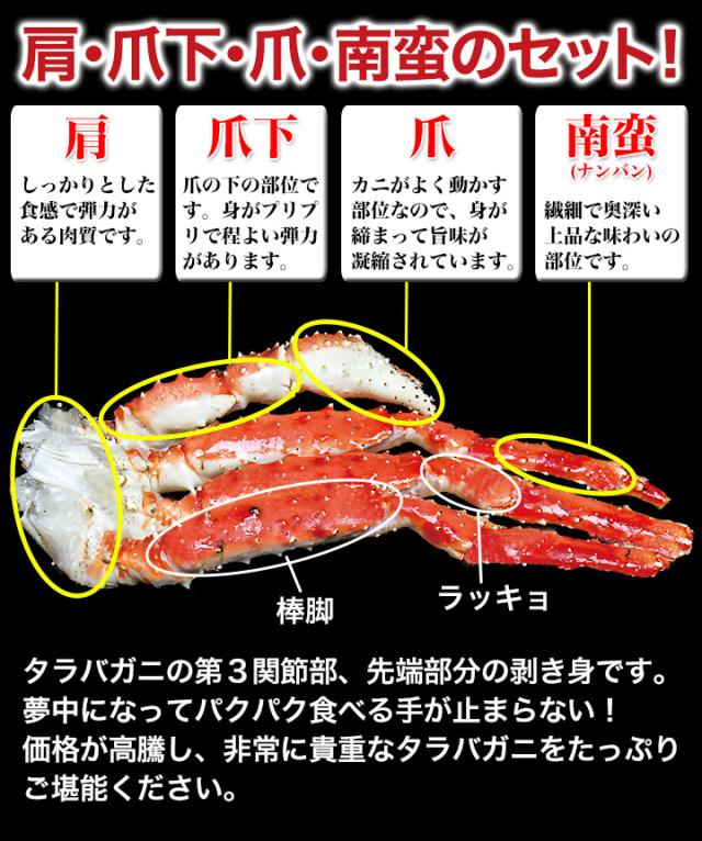 生タラバガニの南蛮・肩肉・爪下・爪の剥き身セットです。