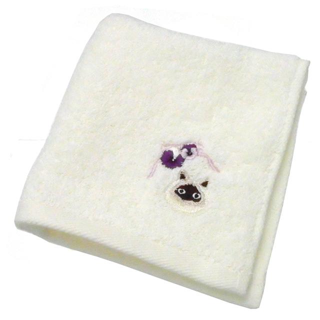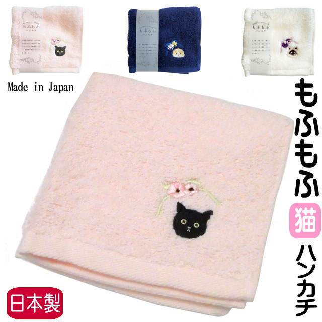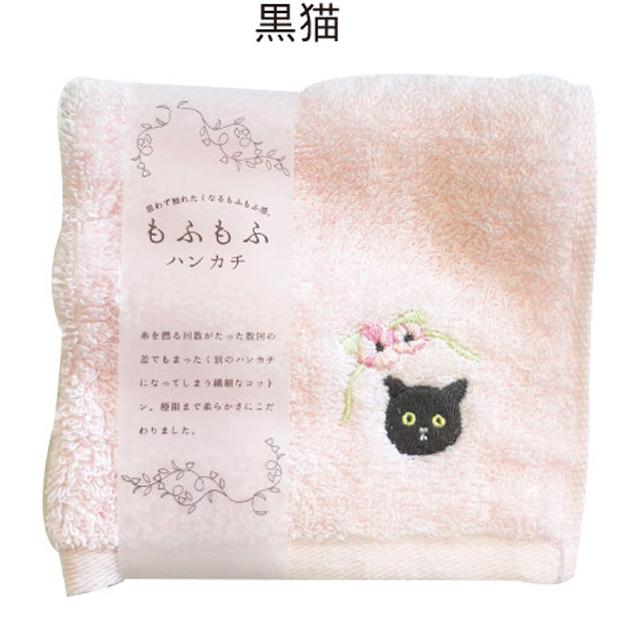 タオル ハンカチ 猫 猫柄 刺しゅう 綿 コットン もふもふ ハンドタオル 手ふき 人気 ねこ ネコ 猫雑貨 猫グッズ レディース かわいい