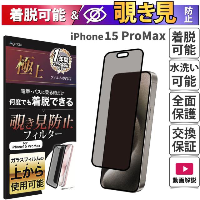 iPhone 15 ProMax 覗き見防止 フィルムの上からでも貼れる 着脱式フィルター さらさら ブルーライトカット かんたん 安心 プライバシー 全面保護 スマホフィルム アンチグレア のぞき見防止 保証 アイフォン アイホン ポイント消化 除き見