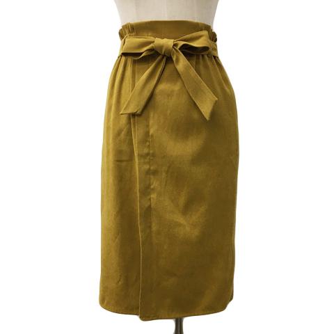 【中古】ロペピクニック スカート タイト ひざ下 ミモレ ウエストゴム リボンベルト スエード調 スリット 38 黄