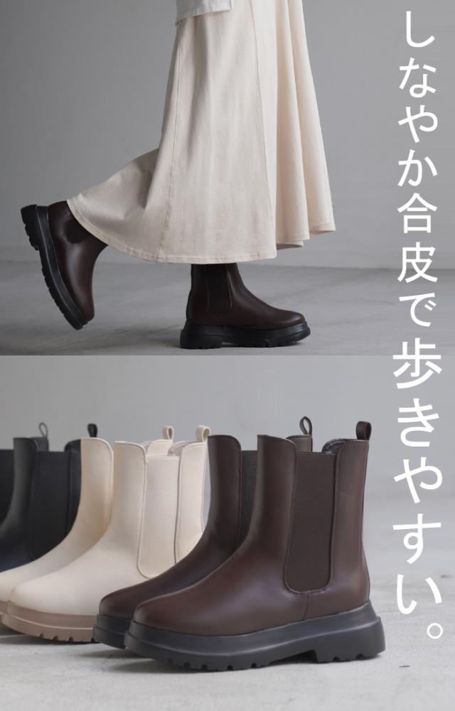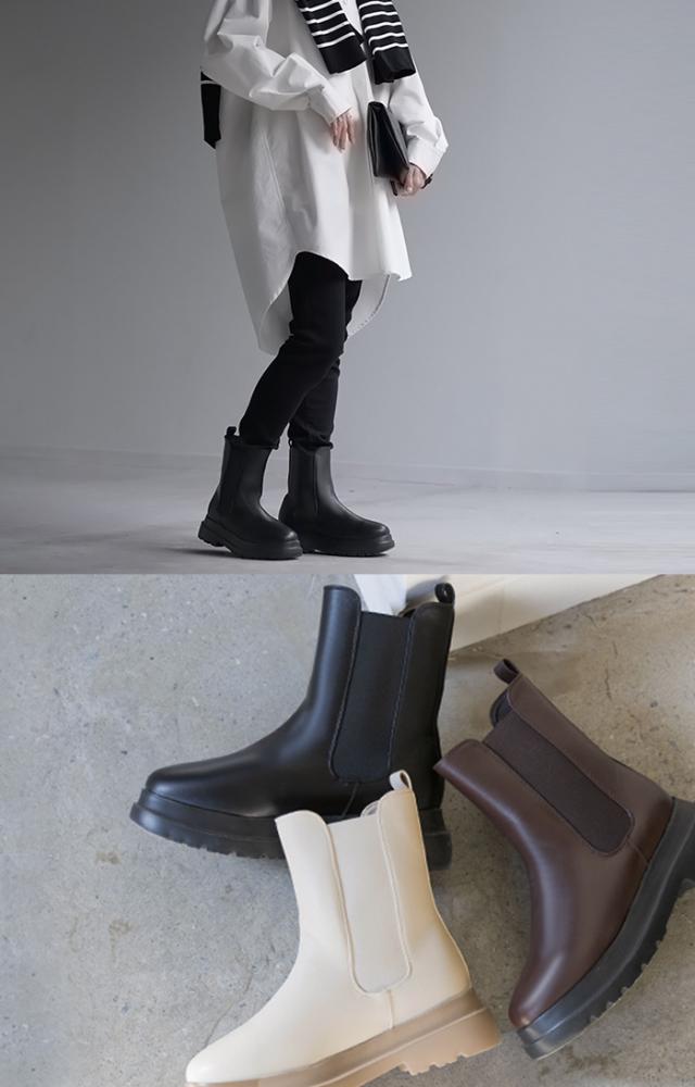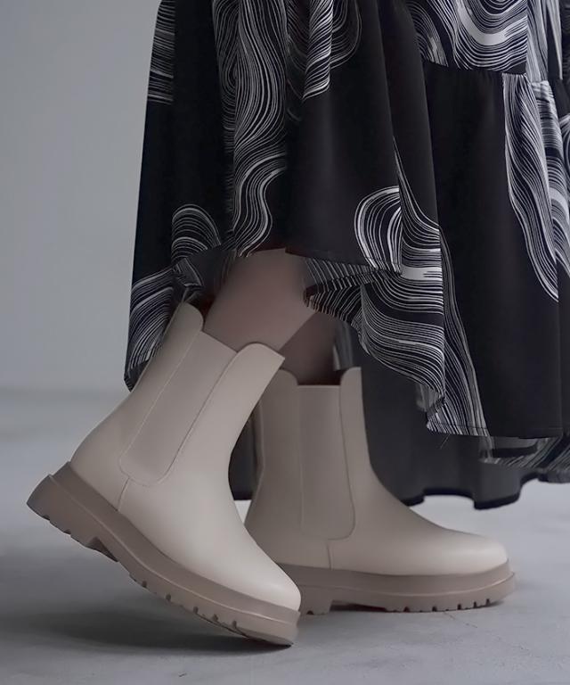 足元にボリューム感をプラスできるサイドゴアデザインのミドルブーツです。