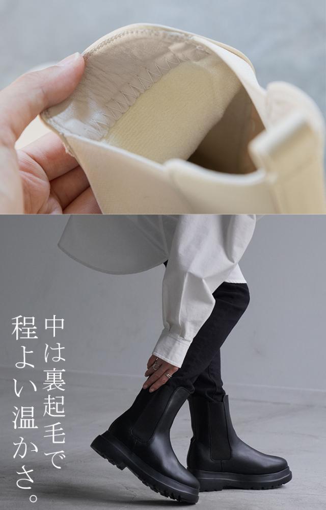 サイドゴアになっているので着脱も楽々、履くだけ自然なスタイルアップが叶うオススメアイテムです。