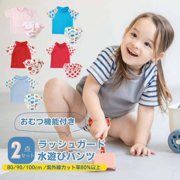 【2点セット】【半袖ラッシュガード+パンツ】ベビー 水着 ベビー 水着 男の子 ベビー 水着 女の子 ベビー ラッシュガード 水着 オムツ機能付き 水遊び用オムツ 水遊び用パンツ