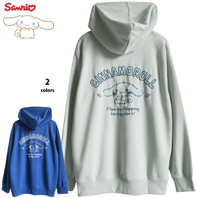 送料無料 シナモロール パーカー サンリオ シナモン 刺繍 バックプリント フーディー レディース オーバーサイズ メンズ ゆるカジュアル 春 秋 フード スウェット sanrio かわいい ゆったり TDL ペアルック グレージュ ネイビー ブルー もこもこ 大人 おしゃれ