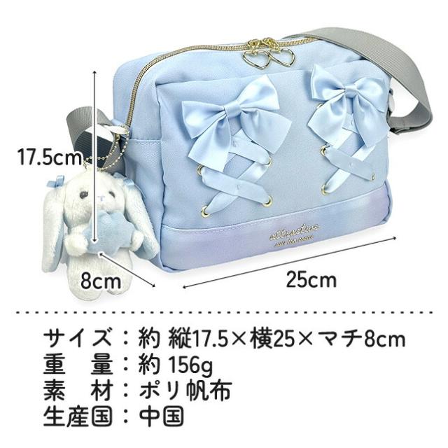 キッズ ショルダーバッグ 女の子 子供 小学生 かわいい おしゃれ ガーリー ポシェット mdw-513 anilet+ アニレット あみあげボン ヨコ型ショルダー 斜め掛けバッグ A5 リボン たれ耳うさぎ ぬいぐるみ付き 人気 女子 ガールズ 小学生 低学年 高学年 中学生 こども