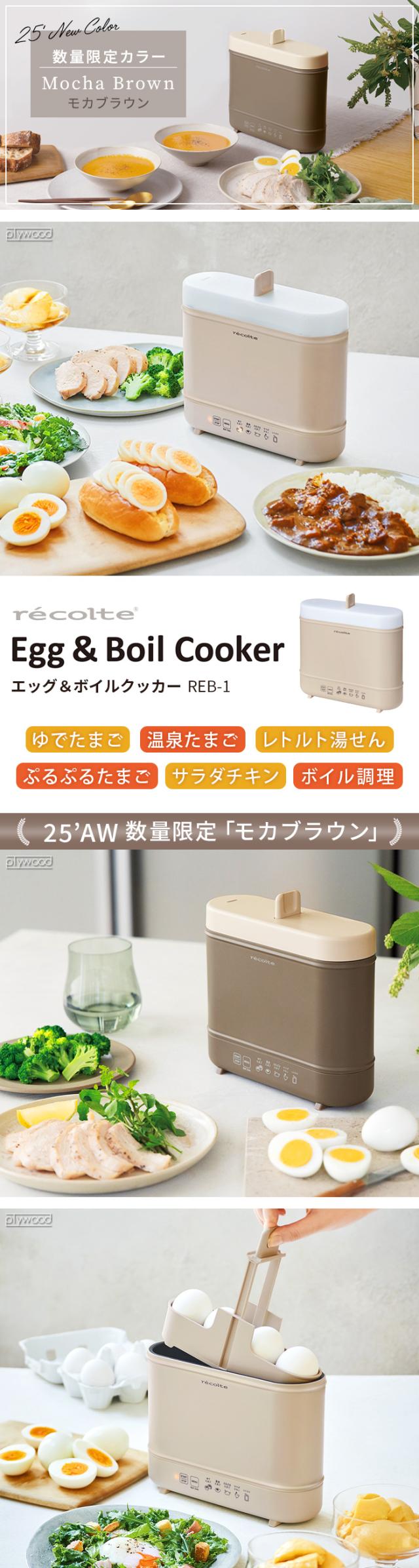 【2大特典付】 電気 ゆで卵メーカー ゆで卵器 半熟 固ゆで 温泉たまご レコルト エッグ&ボイルクッカー recolte Egg&Boil Cooker REB-1 ゆでたまご ゆで卵 4個 自動 サラダチキン 小型 低温調理 湯せん 調理器 だし巻 おしゃれ モカブラウンシリーズ 送料無料 P10倍
